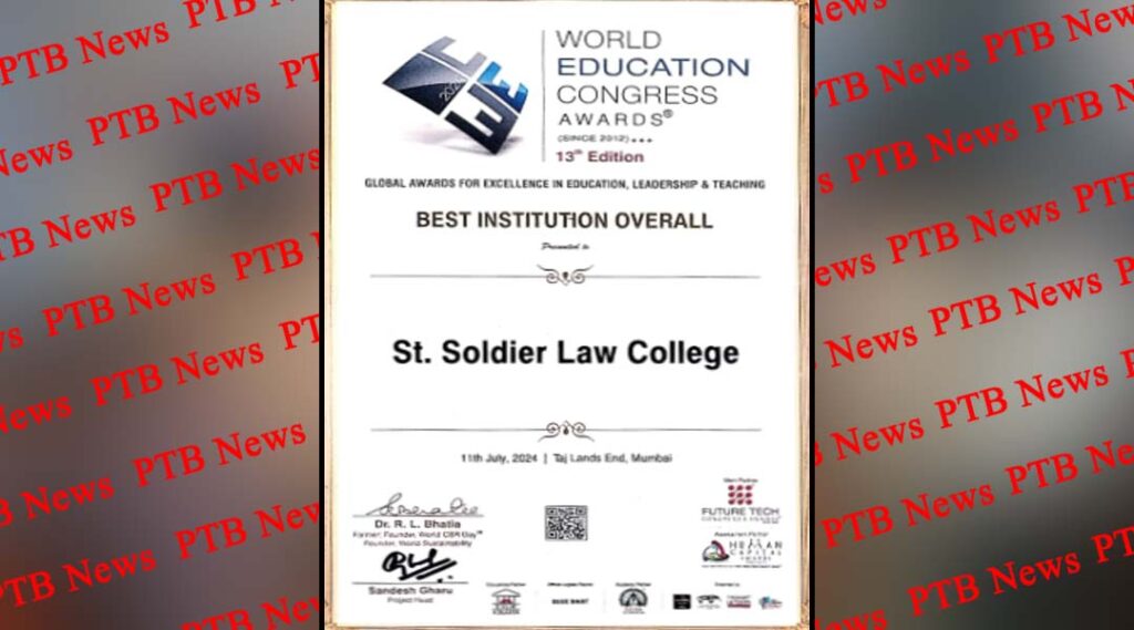 PTB News “शिक्षा” : सेंट सोल्जर प्रबंधन के मार्गदर्शन और सहयोग तथा स्टाफ सदस्यों और विद्यार्थियों की कड़ी मेहनत के परिणामस्वरूप सेंट सोल्जर लॉ कॉलेज ने कानूनी शिक्षा के क्षेत्र में अपने योगदान के लिए एक और अवार्ड जीता है।